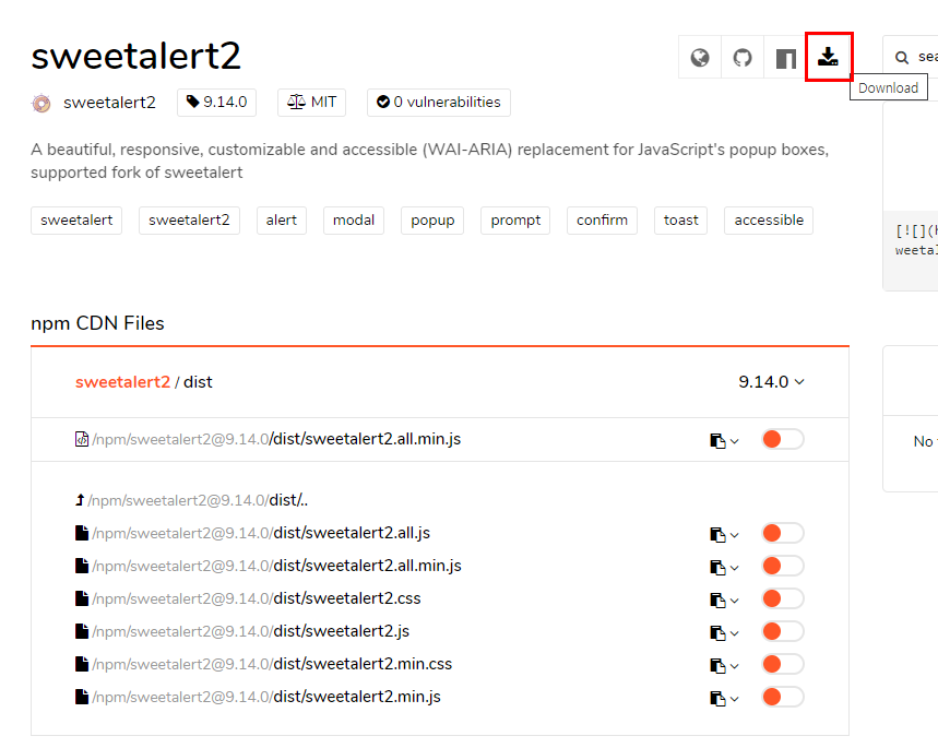 tar -xvzf sweetalert2-9.14.0.tgz